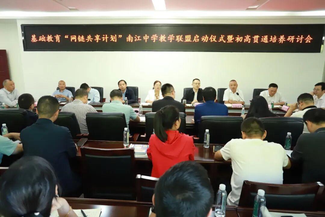 近日,巴中市南江中学“网链共享计划”教学联盟启动仪式暨初高贯通培养研讨会在七一校区举行。南江县委教育工委副书记、局党组成员张莉,南江中学党委书记冉桂洲、校长陈小魁,县内多所矩阵网点学校书记校长、教学副校长以及初高中数学、物理学科骨干教师代表齐聚一堂,共商教育发展大计。