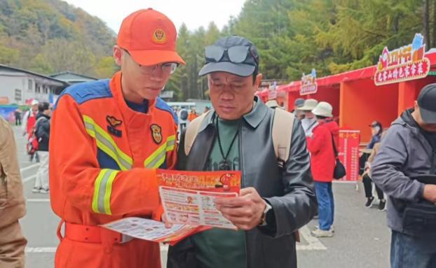 驻勤期间,执勤组化身景区安全“守护者”,积极开展为民服务,耐心为来往游客解答咨询、指引观光线路,及时解决游客遇到的突发状况,让一抹”救援橙”成为红叶节里一道独特的“安全风景线”。