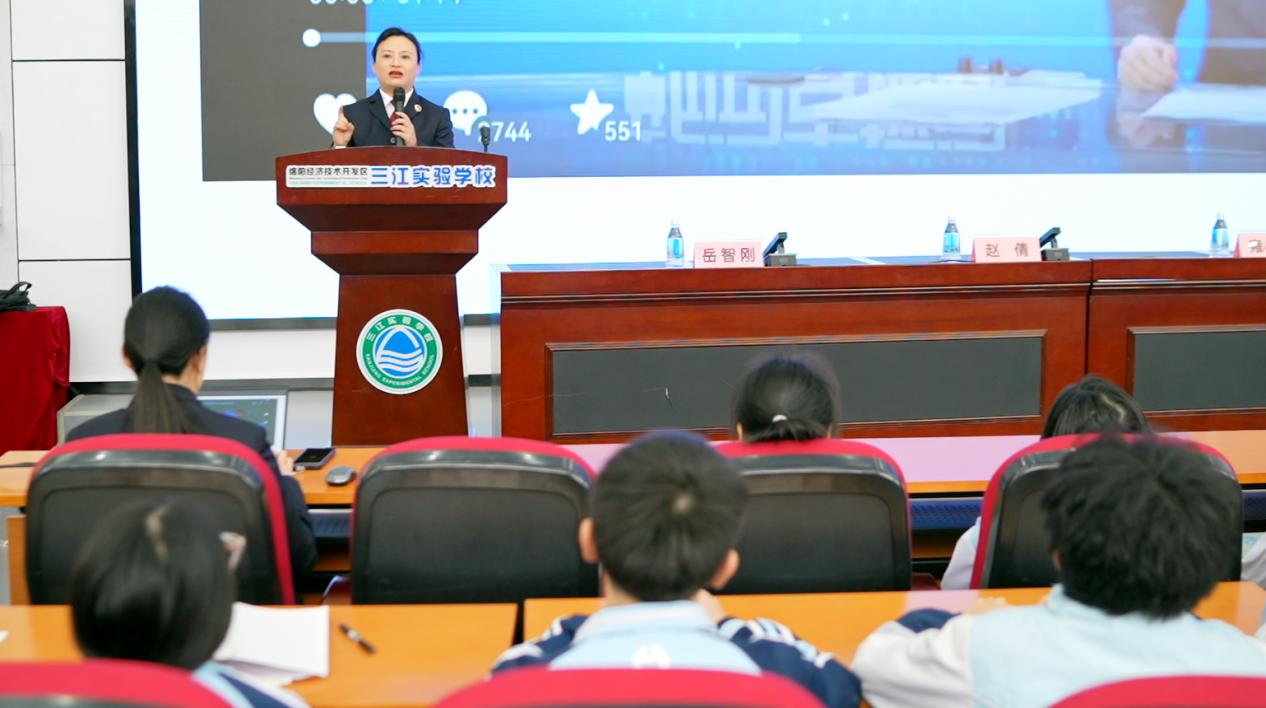 12月4日下午,经开区检察院党组书记、检察长雍小凤走进三江实验学校,参加法治副校长聘任仪式暨法治宣讲活动。雍小凤以法治副校长的身份,结合检察机关办理的真实案例,以案说法、以案释理,为在场的180名师生代表送上了一堂生动的法治教育课,内容紧密贴合初中学生的年龄特点和认知水平,聚焦预防未成年人犯罪、拒绝校园欺凌等话题,阐述了违法犯罪对个人、家庭及社会造成的严重危害,倡导未成年人要信仰法律、敬畏法律、相信法律。课堂还设置了互动问答环节,同学们踊跃提问,气氛活跃,在交流中进一步加深了对法律知识的理解和认识。