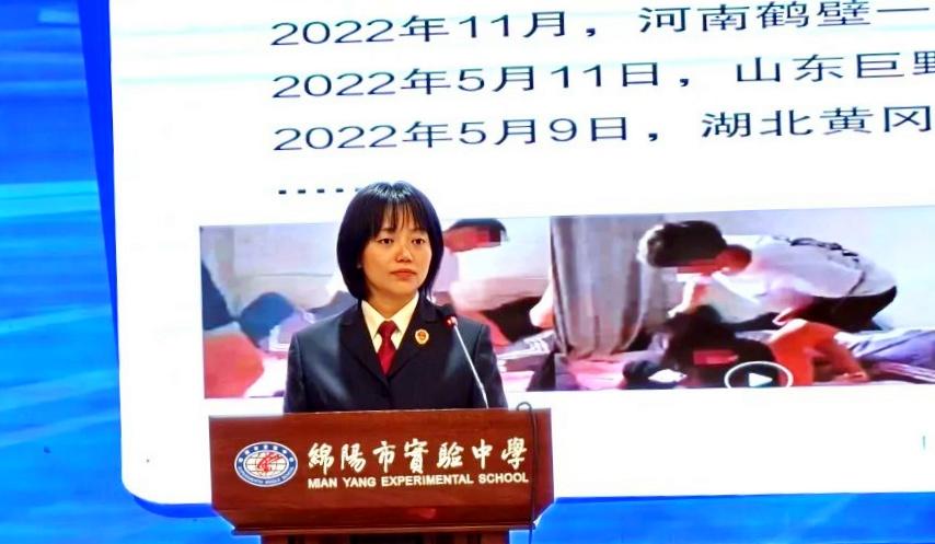 2026年1月6日,绵阳市实验中学教室里洋溢着青春活力。涪城区检察院党组成员、副检察长熊妮娜以法治副校长身份走进课堂,为300余名学生带来一堂别开生面的法治课。