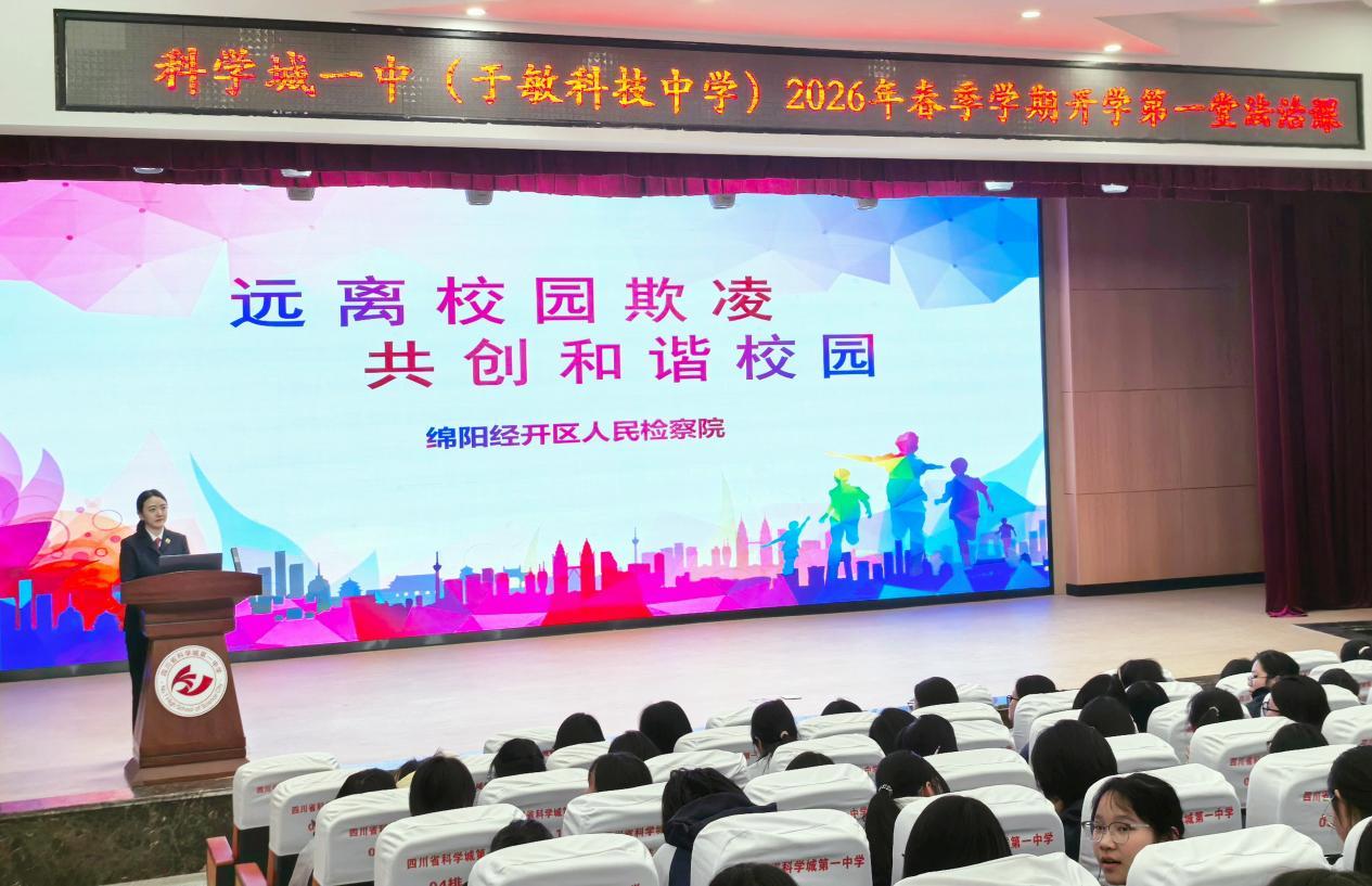 3月5日,绵阳经开区检察院未检宣讲团走进四川省科学城一中,为高一年级300余名女生带去了以“远离校园欺凌 共创和谐校园”为主题的专题法治宣讲。此次活动,是绵阳经开区检察院2026年第3次开展“开学第一课”普法活动。