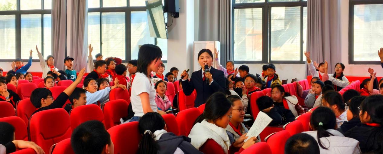 在凯江小学,法治副校长创新教育形式,采用情景互动与现场问答相结合的方式,让法治教育更具趣味性和实效性。法治副校长设置法治知识问答环节,引导同学们主动参与、积极思考,在互动中学习法律知识、增强法治意识。同时,重点引导同学们树立自觉抵制打架斗殴、沉迷网络、不良交友等行为的底线意识,帮助同学们切实提升法治素养和自我保护能力。