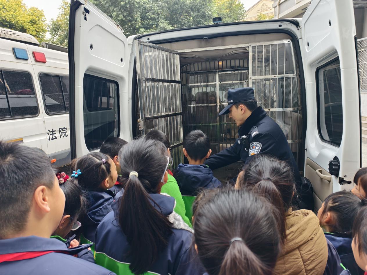 紧接着,同学们排队参观了法院囚车与羁押室。通过警官的耐心讲解,同学们了解到这些特殊设施的用途与规范,也对法院的严肃职能有了更深的认识。“原来,这里不仅是解决纠纷的地方,更是守护社会公平正义的坚实防线。”