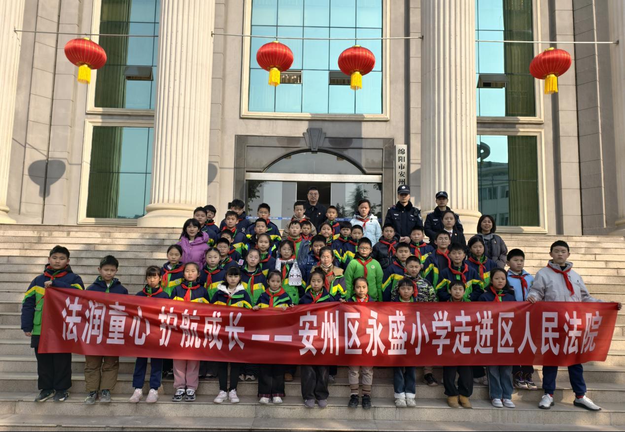 近日,绵阳市安州区法院举行的开放日活动迎来永盛小学四至六年级的学生代表们,开启了一场沉浸式的法治启蒙之旅。