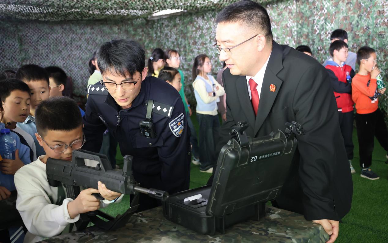 “三点一线,深呼吸,轻扣扳机……”法警耐心指导,孩子们轮流体验。每一次命中靶心,都引来阵阵欢呼。欢声笑语中,孩子们对司法警察这一职业有了更直观、更生动的认识。
