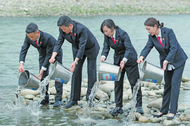 2025年4月,成都环境资源法庭开展线上答题互动活动,40余万网友在线见证鱼苗放归江河
