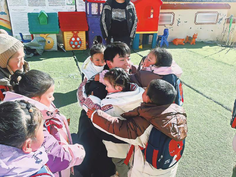 近日,在甘孜州新龙县德麦巴村幼儿园的院子里,一群脸蛋上印着“高原红”的孩子们,正围坐在一名身穿驻村工作服的叔叔身边。他们手中捧着崭新的书包,眼睛里闪烁着好奇与喜悦。孩子们围着的人叫韩夏,是眉州监狱驻村工作队队员。