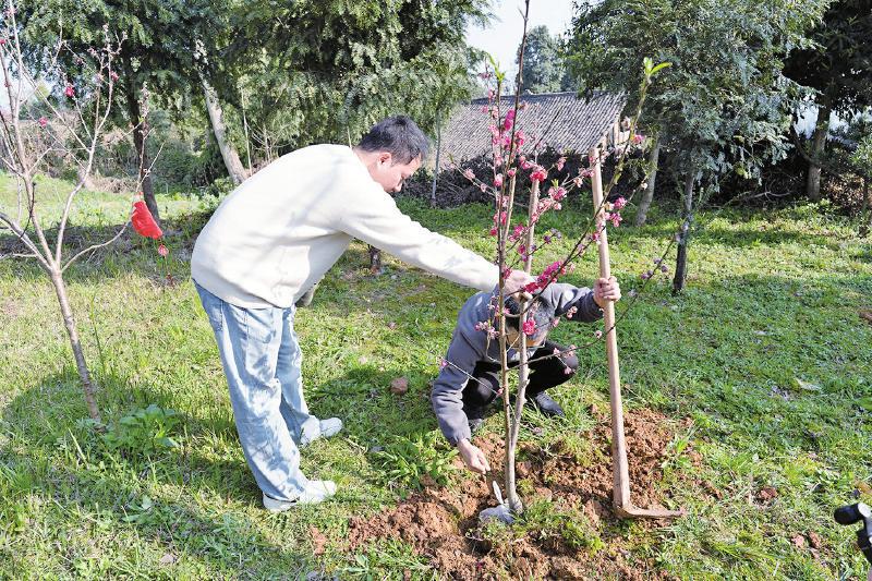 3月11日,雅安市名山区检察院开展植树活动,检察干警们分工协作,将一棵棵树苗栽进泥土中 张一鸣 摄