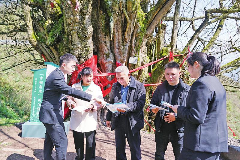 叙永县法院法官现场为周边群众开展普法宣讲,科普古树名木的价值 杨丹 摄