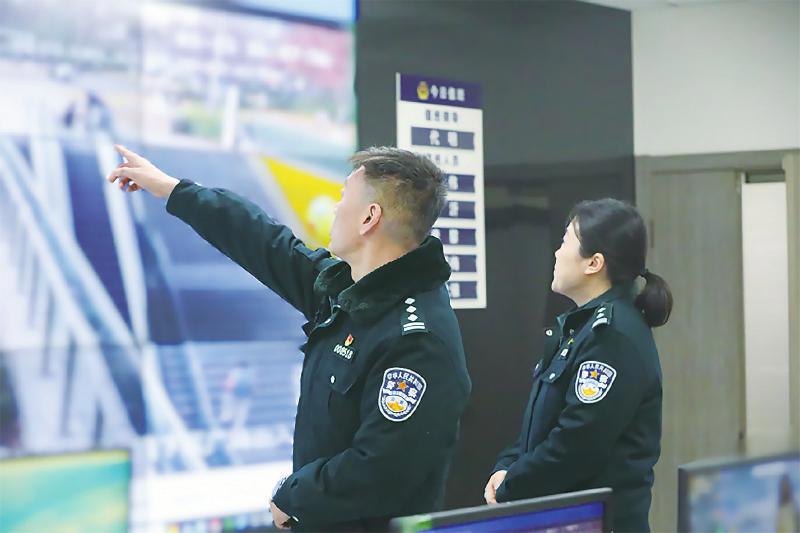 代明在茶店子派出所综合指挥室进行视频巡查