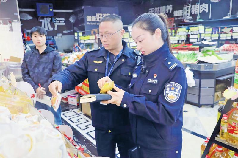 陈霞(右一)到超市开展检查