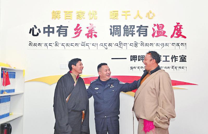 2024年11月,甘孜公安首个以个人命名的调解室——“呷呷调解工作室”正式揭牌。呷绒降泽作为首席调解员,秉承“调的是纠纷,解的是人心”理念,创新推出“情、理、法”融合调解模式,让调解工作更有温度、更具力度,让无数剑拔弩张的矛盾化为握手言和的温情。