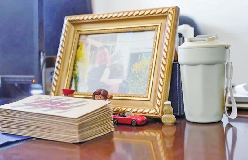 银小强办公桌上与儿子的合影