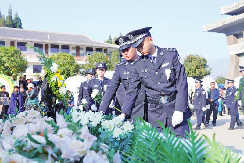 战友们在追悼会上向银小强告别 雷波县公安局供图