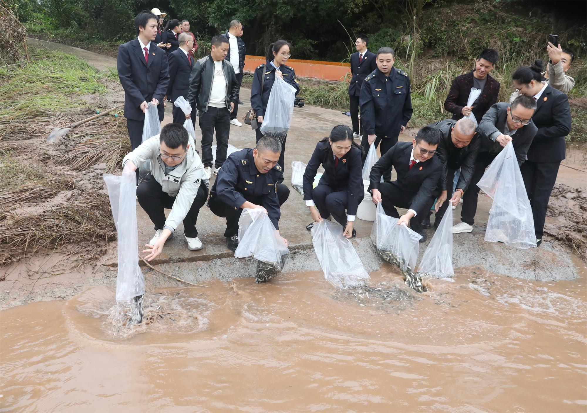 10月24日,渠县检察院联合县法院、县公安局、县司法局、县农业农村局、县水务局、县生态环境局等多家单位,首次在渠县丰乐镇巴河岩原鲤华鲮国家级水产种质资源保护区,开展增殖放流暨公益诉讼法治宣传教育活动,督促非法捕捞案件当事人履行生态修复责任,推动渠江水域生态系统性恢复。本次活动聚焦“谁破坏、谁修复”的司法原则,通过多部门协同履职,引导涉案人员从“生态破坏者”转变为“生态修复者”。在科学选种与规范流程下,共计向渠江放流岩原鲤、青鳙、中华倒刺鲃等本土珍稀鱼种31.5万余尾,旨在改善水域环境,修复生物链,提升渠江生态系统的稳定性和水生生物的多样性。