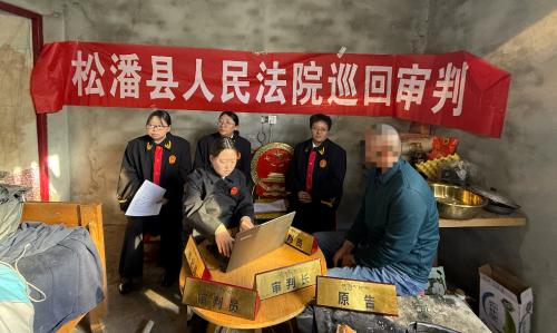 近日,在松潘县的一户普通农家里,一场不同寻常的庭审即将进行。没有高悬的国徽与肃穆的审判席,只有农家卧室略显斑驳的墙壁,与一张简单的病床。法官们小心翼翼地将一枚鲜红的国徽端正挂好,再摆上“审判员”“书记员”的席卡——几分钟内,一个庄重而简易的“巡回法庭”便宣告落成。值得一提的是,这支巡回审判队伍由民事审判庭与行政审判庭的法官共同组成,形成了跨庭室联动的特色审判模式。