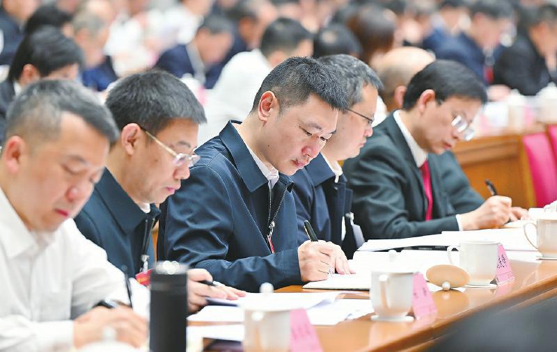 会议现场,参会人员认真聆听大会讲话,不时勾画会议材料,仔细记录工作重点,一系列固根本、管长远的工作部署和务实举措令大家深受启发。