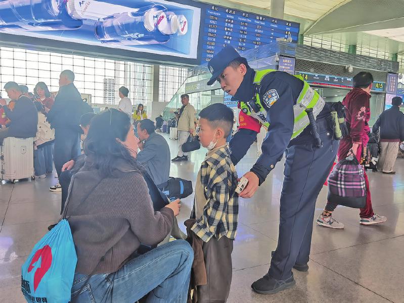 “小朋友,你的家长呢?”“阿姨,我帮您拿行李。”……春假期间,学生旅客激增,派出所将重点关注学生群体,主动提供指引、协助购票、引导乘车等服务。对于老年人、儿童等需要帮助的旅客,民警更是倾注了十二分的耐心与细致。