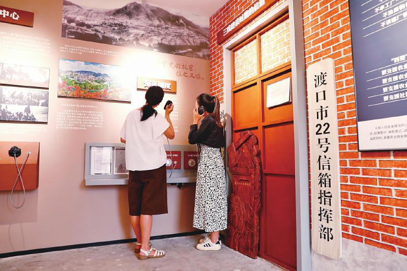 游客拿起听筒聆听三线建设时期的保密故事