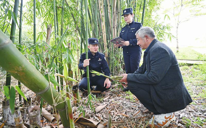 民警向竹农宣传保护野生动植物