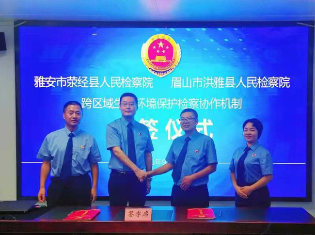 2021年9月,荥经县检察院借助长江上游这一特殊区域位置,与洪雅县检察院签署了《跨区域生态环境保护检察协作机制》,两院共同服务和保障长江流域上游和大熊猫公园荥经、洪雅片区生态环境,同时也为长江上游生态环境和资源保护织就了一张“立体”保护网。