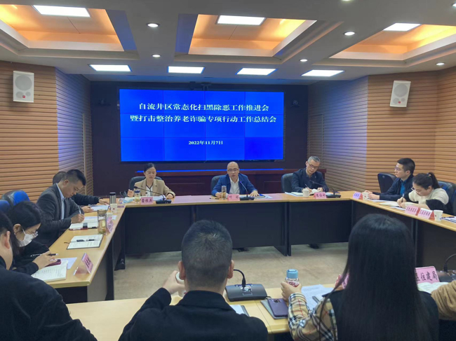 11月7日,自贡市自流井区召开常态化扫黑除恶工作推进会暨打击整治养老诈骗专项行动工作总结会议,区委常委、政法委书记叶林主持会议并讲话,区法院院长陈位初、区检察院检察长雷桂英出席,区扫黑除恶斗争领导小组及打击整治养老诈骗专项行动成员单位分管领导参加会议。