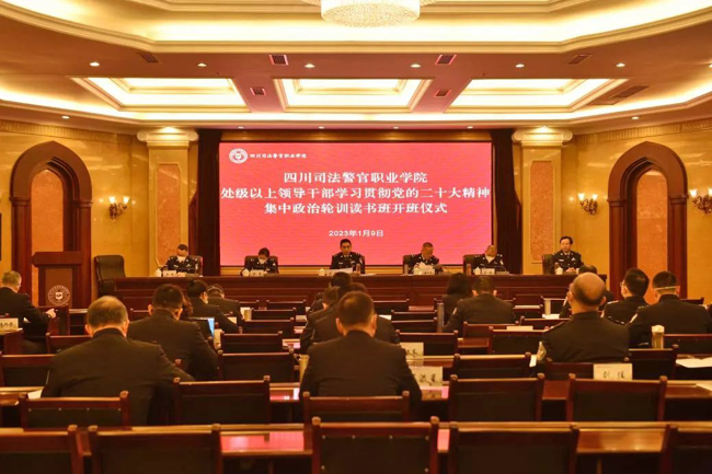 近日,四川司法警官职业学院处级领导干部学习贯彻党的二十大精神集中政治轮训读书班开班,着力进一步推动学习宣传贯彻党的二十大精神走深走实。学院党委书记田亮作开班动员讲话并作首场专题辅导,学院党委副书记、院长张大立主持开班式。