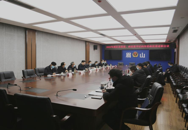 1月12日,眉山市召开2022年度区县委常委、政法委书记向市委政法委述职会议。市委常委、政法委书记杨军主持会议并讲话。