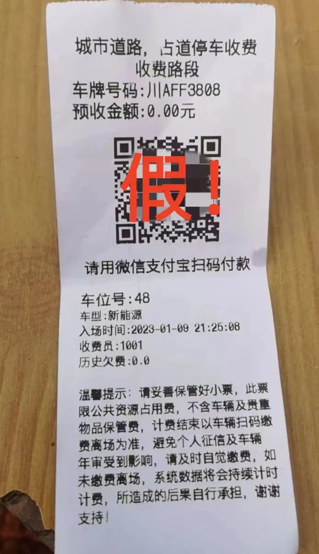 仁寿公安温馨提示:在扫码支付停车费时,请注意识别假冒小票,凡是个人二维码的小票均为假冒小票。