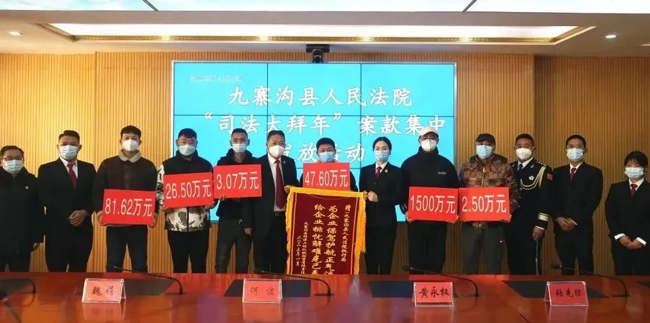 1月10日,九寨沟县法院举办“司法大拜年”专项执行案款集中发放活动,为6名涉及追索劳务报酬、人身损害赔偿、建工合同等民生案件的申请执行人发放执行案款1600余万元。