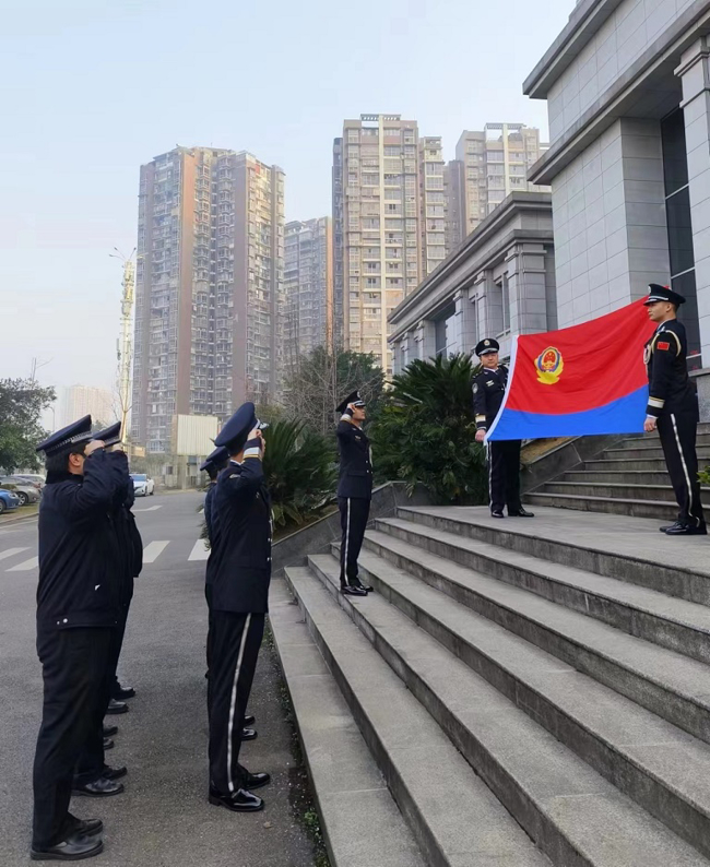 1月10日上午,在第三个“人民警察节”到来之际,自贡市自流井区人民法院全体司法警察面对警旗庄严宣誓。