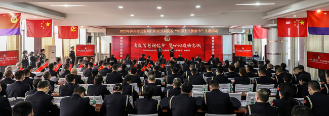 1月10日,泸州市江阳区公安分局以“勇毅笃行担使命 警心闪耀映忠诚”为主题,举行2023年中国人民警察节系列庆祝活动。泸州市委常委、江阳区委书记郭宏川,泸州市公安局党委副书记、常务副局长张玉帆,江阳区委常委、区委政法委书记张志方,区委常委、区政府党组成员、区委办公室主任路敦琴,副区长、区公安分局局长王高承,区法院院长王桂林,区检察院代理检察长张茂林,分局党委副书记、政委朱灵以及分局全体党委班子成员出席主题仪式。