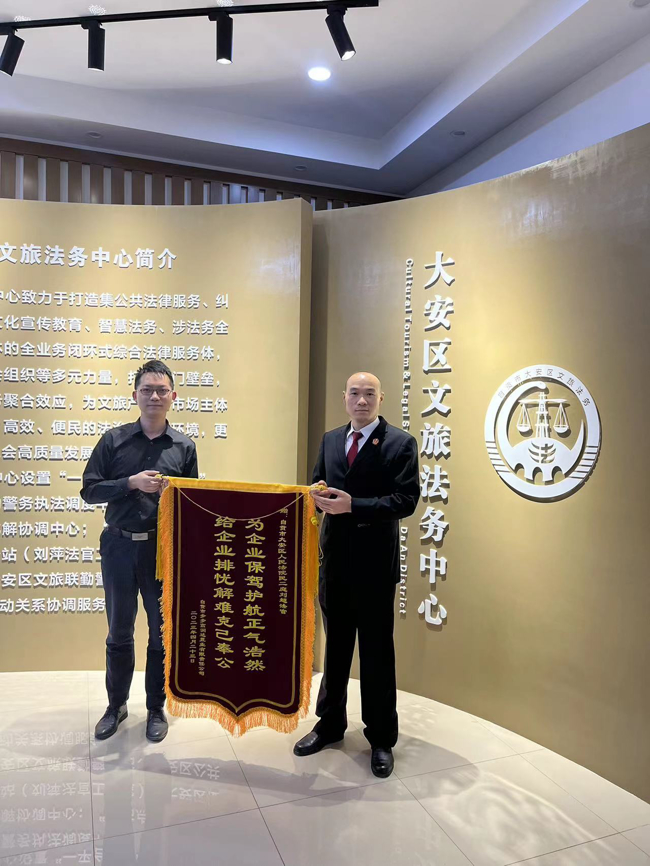 近日,在大安区文旅法务中心,一面“为企业保驾护航正气浩然,给企业排忧解难克己奉公”的鲜红锦旗很是醒目,它是当事人对法官的真诚感谢,也是对法院工作的高度肯定。