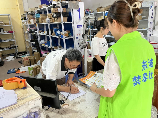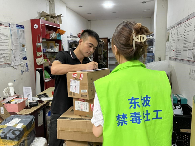 毒品是一种危害人类身心健康的物质,它会对个体、家庭、社会造成极大的伤害。为了保障社会的安全和稳定,加强寄地物流禁毒工作势在必行,7月,眉山市东坡区思蒙镇禁毒社工开展物流寄递禁毒宣传活动。