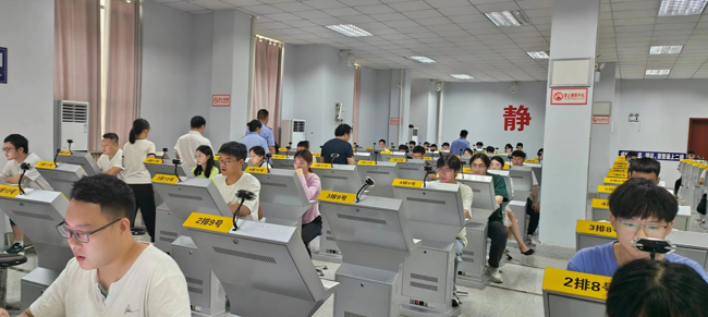 在安静有序的考场,大教室里坐满了考生,在电脑前认真地答题。据介绍,这个是全国一流的考场,每天大约有数百人参加考试,循环进行,有考生答题完离开考场后,另一名考生立刻进入考试。