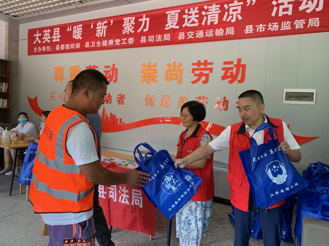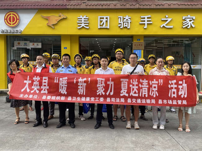 为更好服务新业态新就业群体,加大对新就业群体的关爱凝聚、法治浸润和维权保障,近日,遂宁市大英县司法局积极参与全县“暖‘新’聚力 夏送清凉”活动,扎实开展普法润“新”、维权舒“新”法治活动。