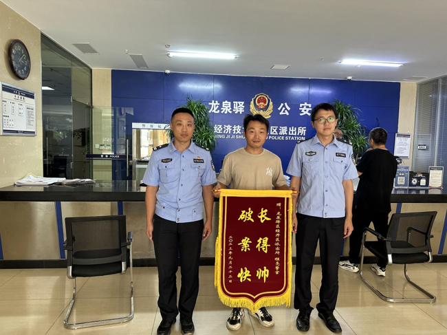 隔日上午,王先生再次来到经开区派出所,将一面写着“长得帅,破案快”的锦旗送给民警程亮,感谢民警及时帮自己找回丢失的物品。