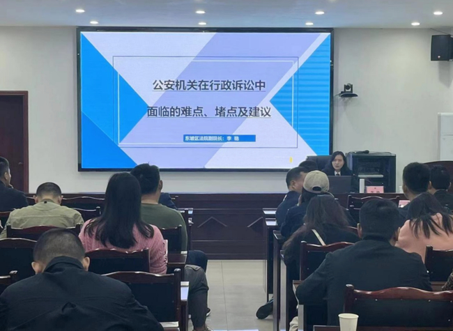 会上,李艳副院长就《公安机关在行政诉讼中面临的难点、堵点及建议》为题,围绕东坡法院行政诉讼案件情况、公安机关败诉的原因、行政诉讼中举证质证的相关规定、行政机关负责人出庭应诉的情况等方面,结合具体案例,对当前行政机关、特别是公安机关持续做好行政诉讼工作的重点、难点内容予以分析、阐释。