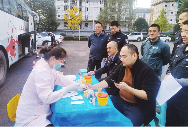 “这是人民警察的责任与义务,我们倡导大家积极参与献血活动。作为一名退伍老兵、公安民警,我持续参与无偿献血,为社会奉献一份爱心。”辅警徐雅兵已经是第6次献血,他主动带头第一个献血,诉说自己的献血故事,以自身经历感染着广大民辅警。