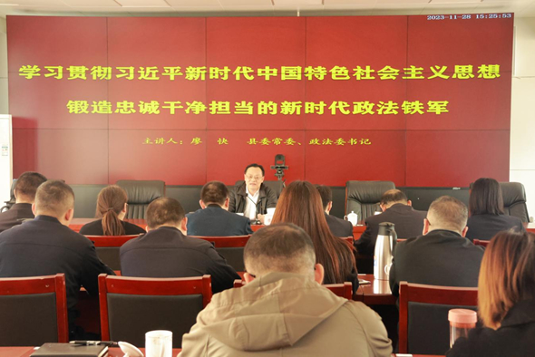 为切实增强政法队伍战斗力和凝聚力,11月28日下午,威远县委常委、政法委书记廖快以“学习贯彻习近平新时代中国特色社会主义思想,锻造忠诚干净担当的新时代政法铁军”为主题,为县委政法委全体党员干部、各政法单位党员代表讲授专题党课。