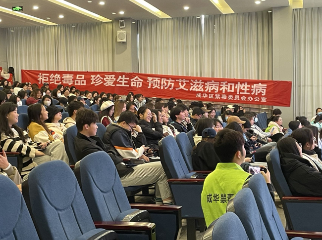 11月29日,成华区禁毒办、成华区卫健局、成华区第七人民医院又在西南财经学院天府校区举办了一场禁毒防艾进大学活动。活动通过发放宣传资料和宣传品,通过禁毒防艾展示架和仿真毒品展示,介绍毒品的种类、危害及对个人、家庭和社会的负面影响,提醒大学生要远离毒品,珍爱生命。志愿者通过PPT演讲稿的形式,生动的讲解了怎样预防艾滋病,精彩的阐述了艾滋病的传播途径、预防措施及对个人和社会的危害,呼吁大学生要树立正确的性观念,避免不洁性行为,增强自我保护意识。通过本次活动,希望能够帮助大学生全面了解毒品和艾滋病的问题,提高他们的自我保护意识。同时呼吁大学生积极参与到禁毒防艾工作中来,成为禁毒防艾的倡导者和实践者,为创建无毒、健康、和谐的校园贡献力量。