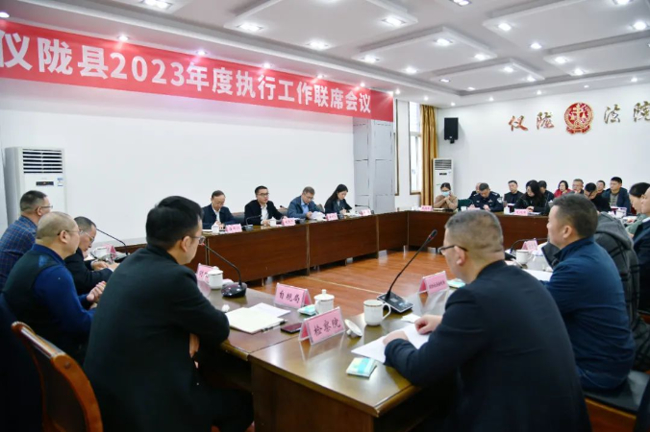 为推动执行难综合治理、源头治理向纵深发展,不断提升执行工作体系和工作能力现代化水平,12月14日,仪陇县2023年度执行工作联席会议在仪陇法院召开。县委常委、政法委书记胡爱明,县政府副县长、公安局局长唐环宇,县法院党组书记、院长蒲泽川,县检察院党组书记、检察长陈燕出席会议,仪陇县执行工作联席会议成员单位分管领导参加会议。会议由陈燕检察长主持。