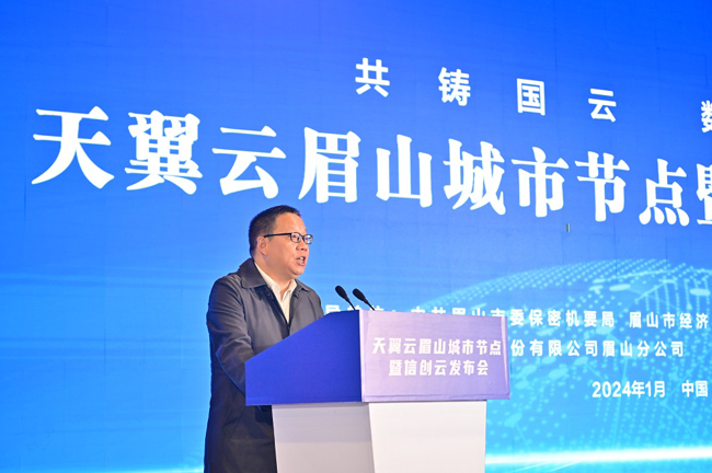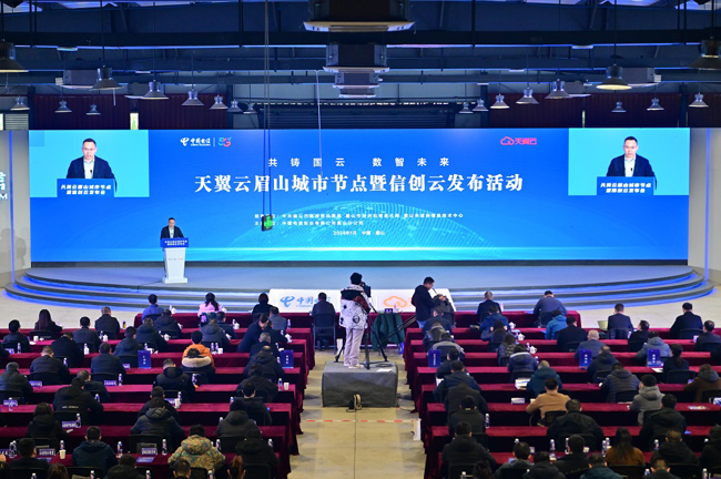 1月5日,由中国电信股份有限公司眉山分公司主办的以“共铸国云 数智未来”为主题的天翼云眉山城市节点暨信创云发布活动在东坡区尚义镇四川电信国防教育基地A区举行。市政府副市长李建兴、中国电信四川公司副总经理蒋成出席活动并致辞。
