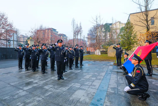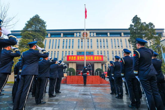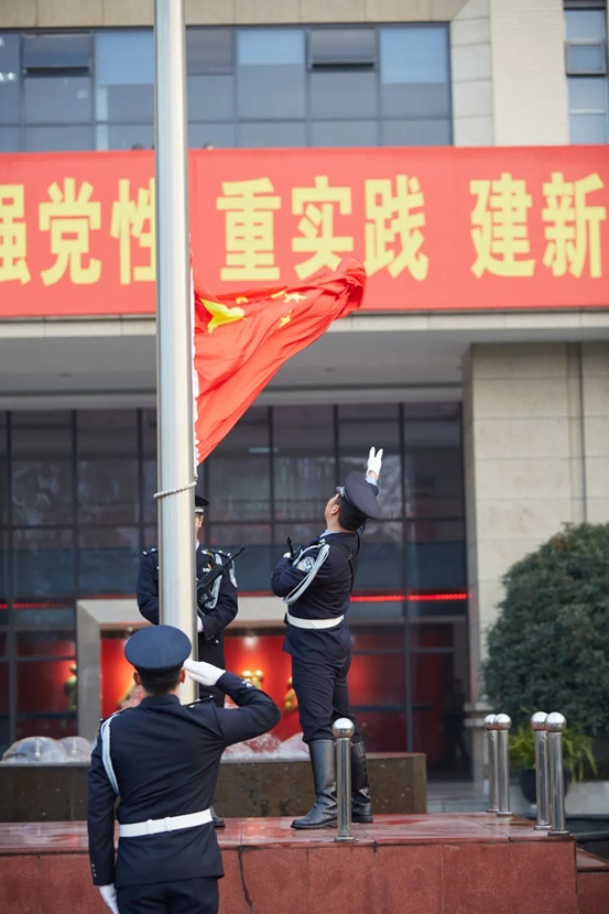 1月10日,为庆祝第四个中国人民警察节,都江堰市公安局开展升国旗、迎警旗、重温入警誓词活动,增强全警荣誉感和归属感。