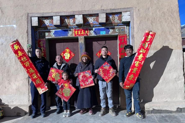 同时,帮扶工作队和村两委一起到村民家中赠送春联、“福”字,让村民充分感受龙年春节喜庆祥和的氛围。一副寓意吉祥的春联,情意浓、寓意深,书写了对新年的美好祈愿,弘扬了中华优秀传统文化,为即将到来的新春佳节营造了浓厚的节日氛围,传递了关爱与祝福。