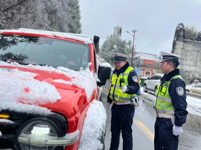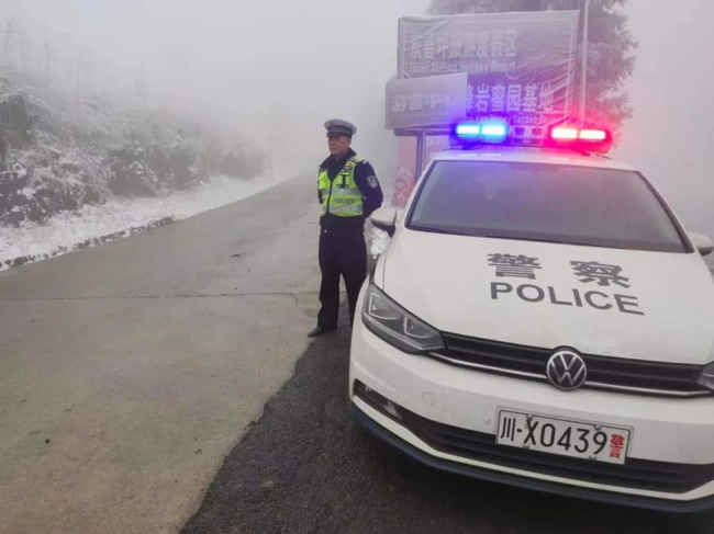 温馨提示,目前,华蓥山景区道路湿滑,欢喜坪景区道路湿滑且雾气较大,华蓥、邻水交警分别在红岩乡、牟家镇斜岩村设置了交通卡口,如遇路面积雪,将暂时封闭路段清理后放行,请按现场交警指挥有序通行。