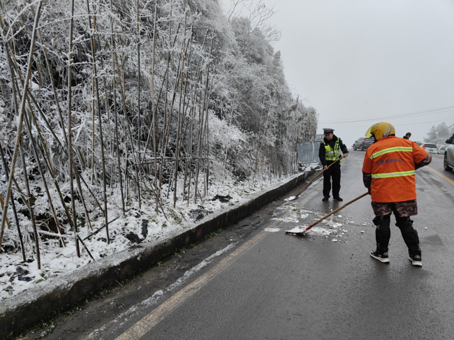 为确保低温雨雪天气下道路交通安全、景区秩序平稳,华蓥、邻水、前锋等地民辅警风雪中坚守岗位,启动应急预案,会同道路养护单位撒盐融冰、全面排查风险隐患、全力强化值班执勤。22日降雪以来,广安市110涉雨雪天气警情平稳,雨雪路段未发生长时间、大面积交通拥堵。