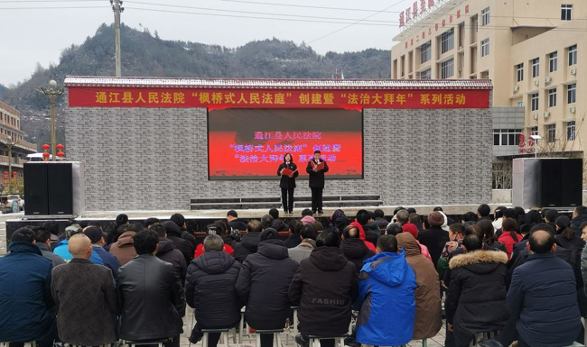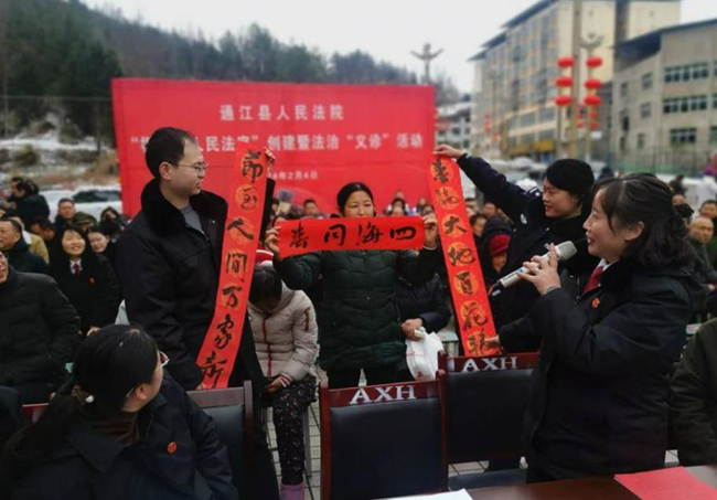 白雪皑皑,普法送暖。2月4日,通江县人民法院在至诚镇便民服务中心广场举办“映山红”巾帼法治宣讲团“法治大拜年”系列活动,以恭贺新春为契机,进一步提高广大群众法治意识,强化法治观念,营造群众尊法学法守法用法的良好法治环境。