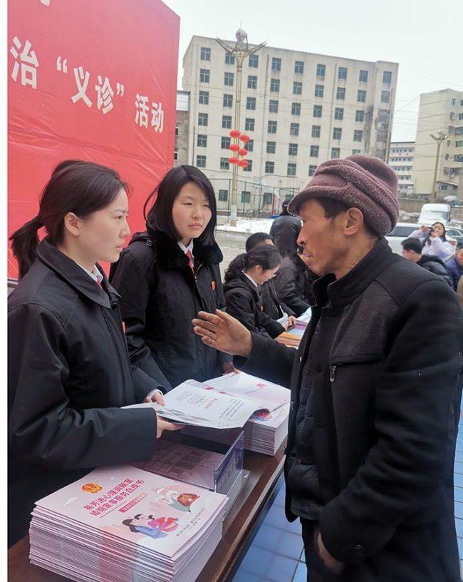 在“法治义诊”台,前来问诊的群众络绎不绝,法院专业“坐诊”人员针对群众提出的有关婚姻家事、借款买卖合同纠纷、建工合同劳务纠纷、刑事案件、执行案件等法律问题进行耐心解答。
