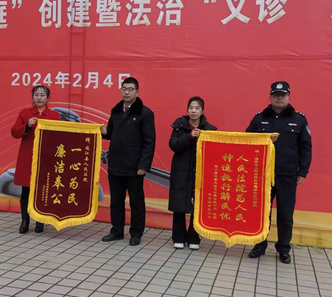 “谢谢法院和执行法官,在过年之前帮我们拿到钱,你们真是辛苦了!”四川易薄云天信息技术有限公司法人刘蕾感谢法院为他们排忧解难,执行到位300万元,让60多名农民工的工资得到解决。并将一面“人民法院为人民,神速执行解民忧”的鲜艳锦旗送到活动现场法官的手中。